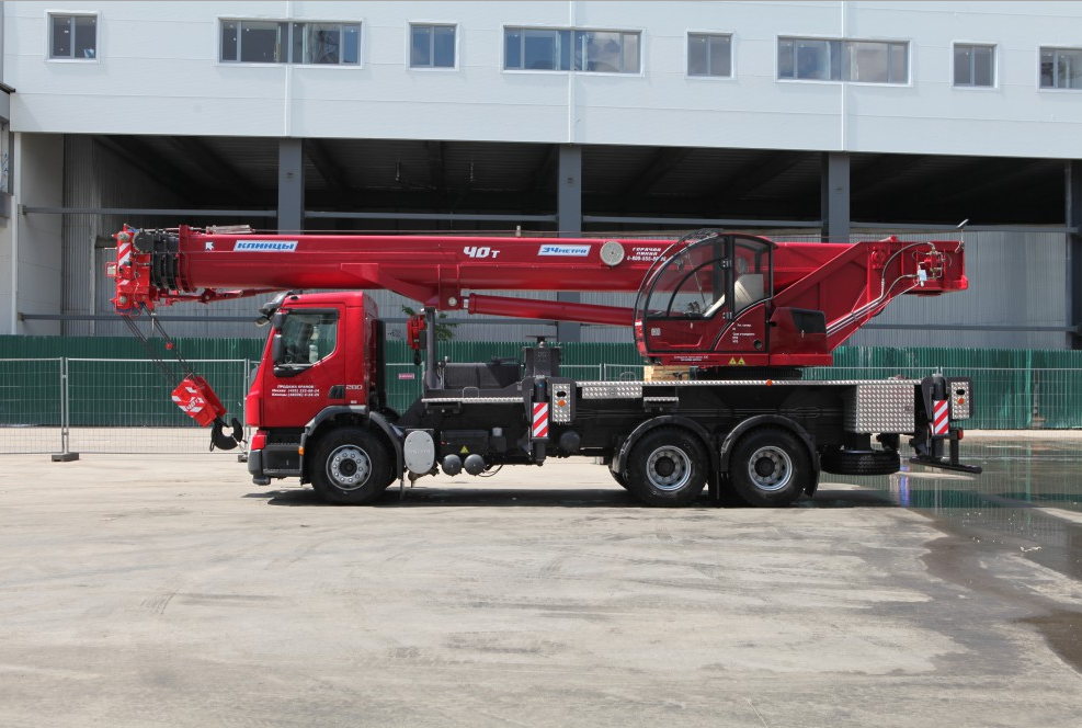 Кран грузоподъемностью 40 тонн смонтирован на трехосном шасси автомобиля модели Volvo FE-280 с колесной формулой 6х4 .