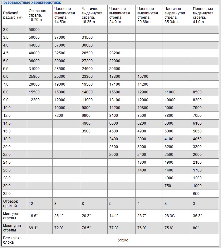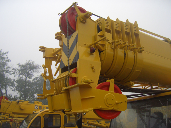 Кран XCMG на автомобильном шасси QY40K укомплектован пяти секционной U-образной телескопической стрелой, двух секционным выносным гуськом, одиночным цилиндром, расположенным спереди, для поднятия стрелы, полный гидравлический контроль и двойной двухступенчатый Н-образный класс выносных опор. Комплекс обеспечения безопасности включает автоматический ограничитель высоты подъема, ограничитель грузового момента, комплект для защиты от обрыва троса.