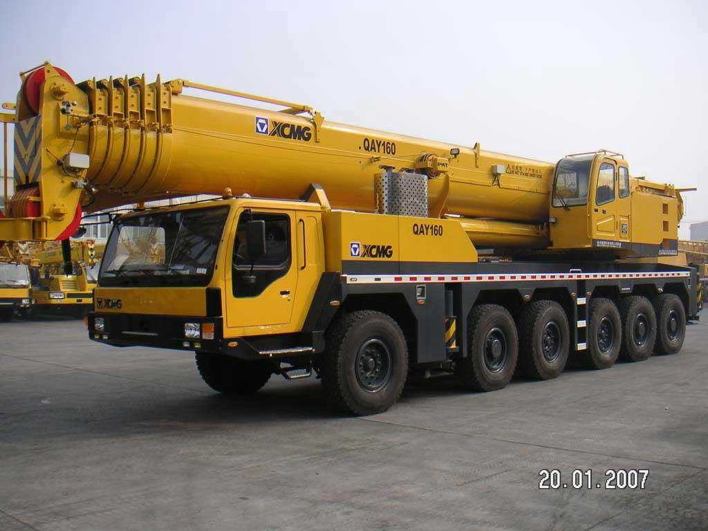 Кран XCMG QAY160 на полноприводном пятиосном шасси с возможностью подъема средней оси. Благодаря повороту задних и передних осей уменьшается радиус разворота до 24 метров. Машина имеет синхронный поворот задних и передних осей, так называемый крабовый ход. Кран XCMG на полноприводном шасси QAY160 оборудован совершенной и высокоэффективной системой управления. Новый класс небольшой конструкции стрелы и встроенный в окончание стрелы слайдер усиливают устойчивость и минимизируют длину. Кран оборудован шестисекционной стрелой U-образного овоидного типа с минимальным весом собственно стрелы, двухсекционным складывающимся гуськом. Продуманный комплекс обеспечения необходимого объема боковой смазки для каждой секции стрелы. Система стрелы - телескопическая. Без использования гибких соединений установлены двойные гидроцилиндры с интегрированными соединениями. Гидравлический комплекс является энергосберегающим, гарантирует точное и хорошее управление перемещениями, а также отличается усовершенствованными рабочими и техническими характеристиками. Высота подъема составляет до 56,3 метров. Овоидный профиль стрелы дает возможность распределять нагрузку на стрелу равномерно.