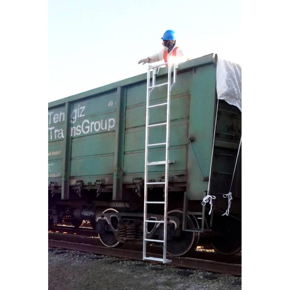 Алюминиевая навесная лестница для безопасного и удобного доступа в железнодорожные полувагоны и кузова грузовых автомобилей.