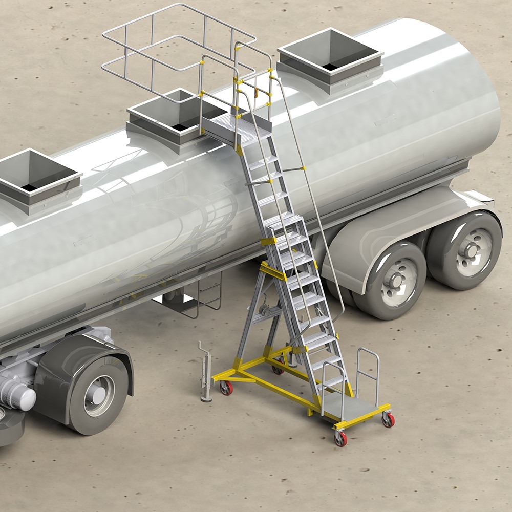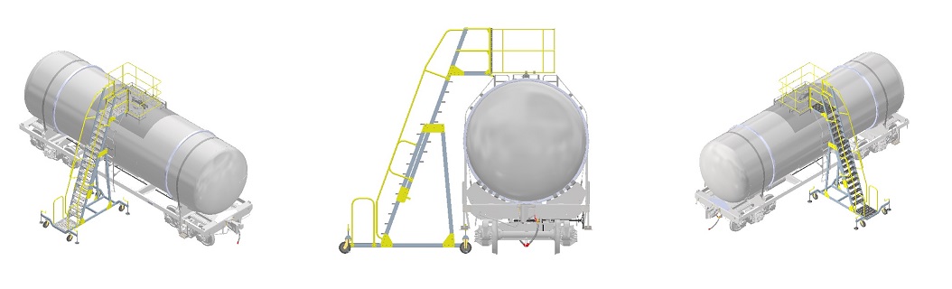 Передвижная алюминиевая конструкция для безопасного обслуживания железнодорожных и автомобильных цистерн с пожаро- и взрывоопасными продуктами.