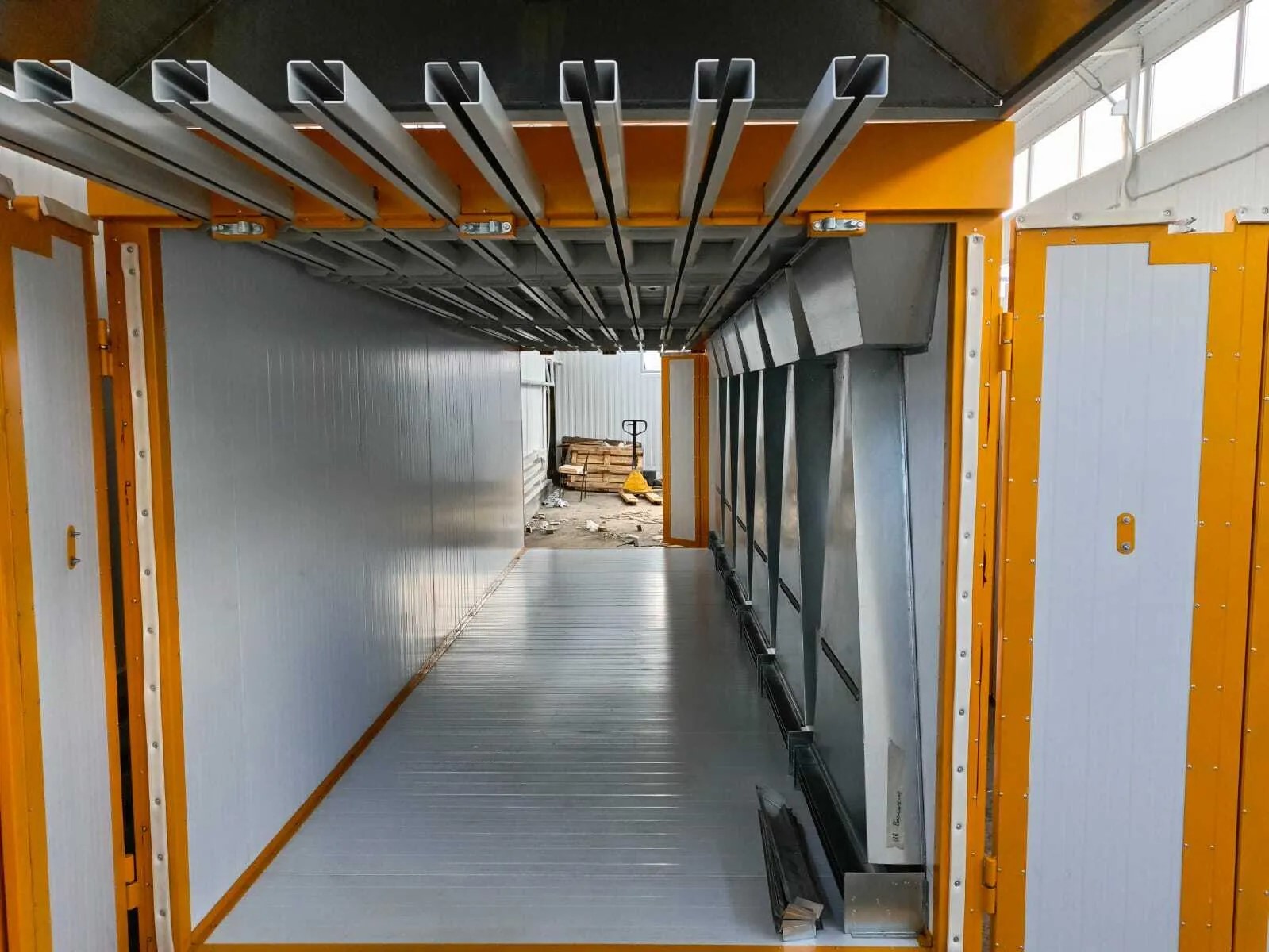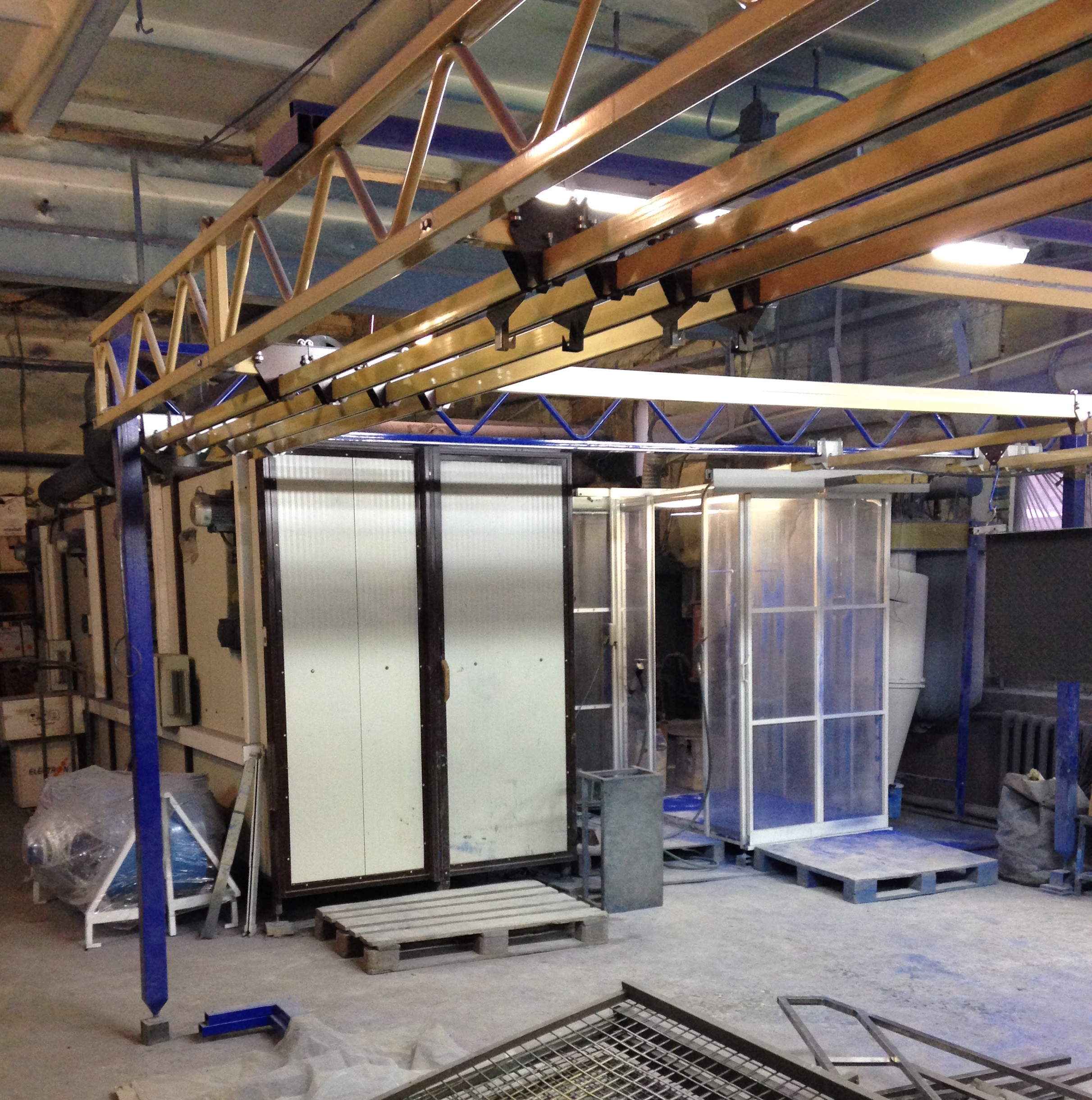 - Комплектация транспортной системой (верхней или нижней) для перемещения окрашиваемых изделий из камеры покраски в печь полимеризации;