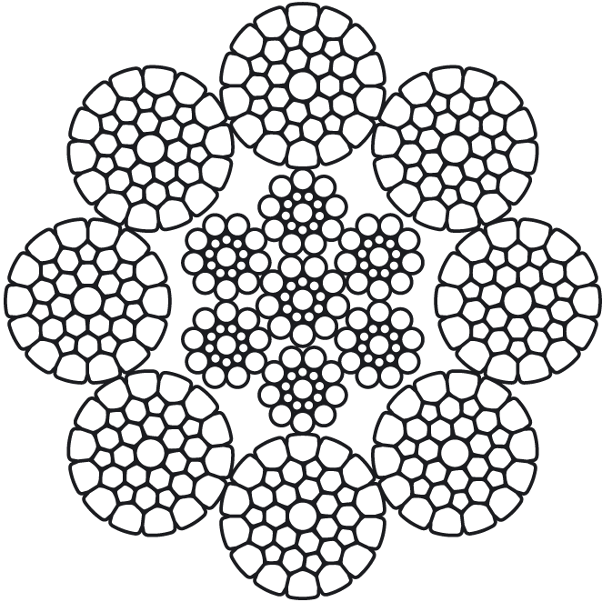Talpa 836K (8-прядные канаты СТО 71915393-ТУ 053-2008). Конструкция: 8х36 + 6х19 + 1х19