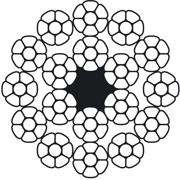 | Обозначение | Многопрядные малокрутящиеся канаты с пластическим обжатием наружных прядей и прядей сердечника EN 12385 |