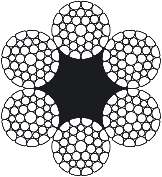 Anaconda 6K (6-прядные канаты с пластическим обжатием наружных прядей и органическим сердечником СТО 71915393-ТУ 040-2007) Конструкция: 6хЗ6 + 1 о.с.