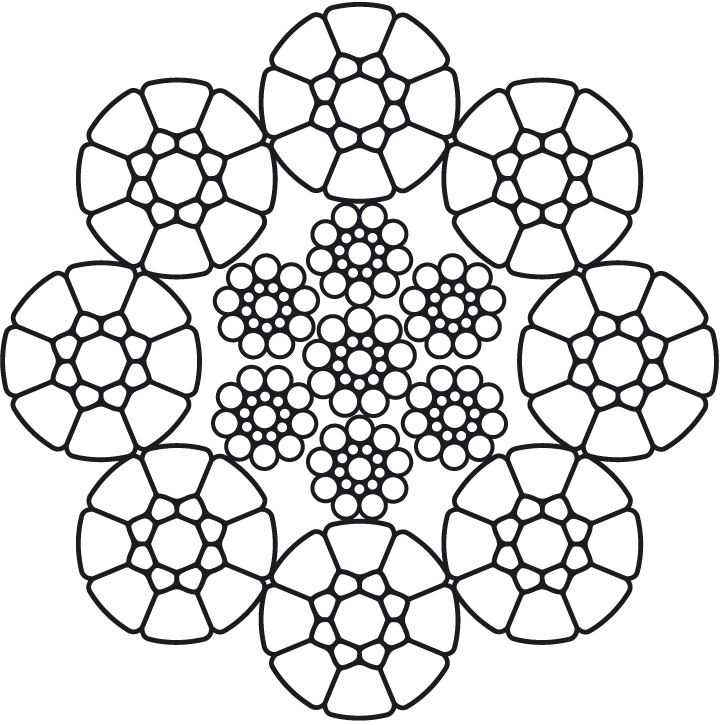 Octopus 817 и 817K (8-прядные канаты, без пластического обжатия СТО 71915393-ТУ 072-2009). Конструкция: 8х17 + 6х19 + 1х19