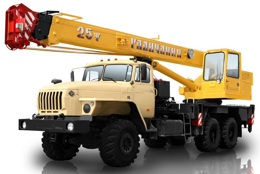 Кран автомобильный КС-55713-3 грузоподъемностью 25 т предназначен для погрузочно - разгрузочных и строительно-монтажных работ на рассредоточенных объектах. Кран смонтирован на трехосном шасси автомобиля-вездехода Урал-4320 оснащенном системами регулировки давления в шинах и блокировки колесных дифференциалов. Система подкачки шин позволяет на ходу изменять давление в камерах колес в зависимости от дорожного покрытия, тем самым увеличивая проходимость машины. Высокая проходимость шасси позволяет использовать кран на объектах, находящихся в труднодоступных местах с плохими подъездными условиями, в том числе на строительстве нефте- и газопроводов, разработках месторождений.