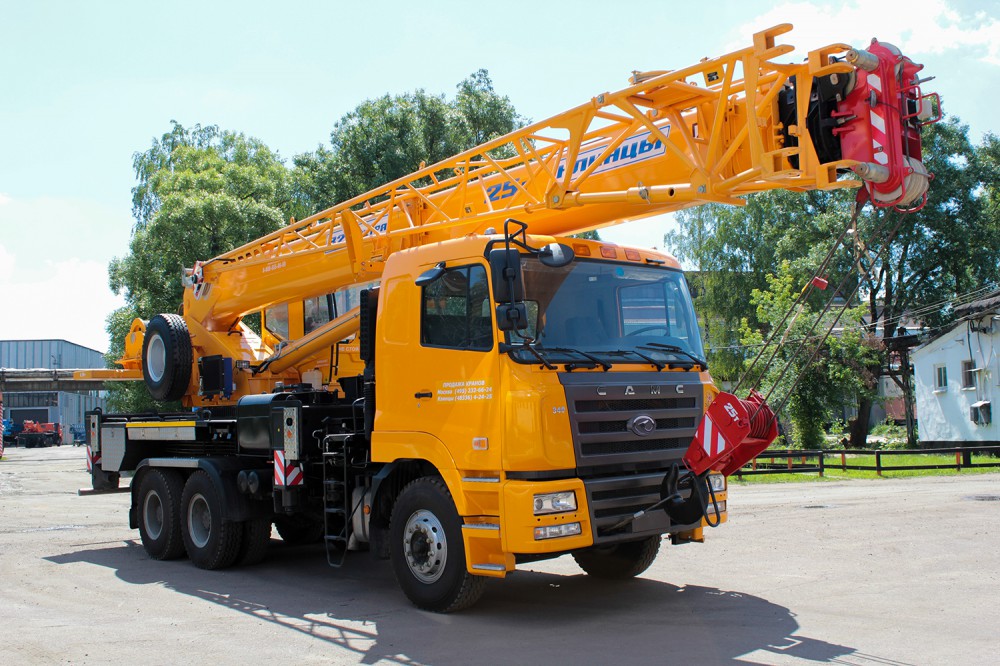 Кран КС-55713-12К-4В предназначен для широкого спектра погрузочно-разгрузочных и строительно-монтажных работ. Кран универсален и может применяться как в стесненных условиях города, так и в условиях удаленности от населенных пунктов. Кран смонтирован на шасси автомобиля CAMC HN3250. Колесная формула автомобиля 6X4.