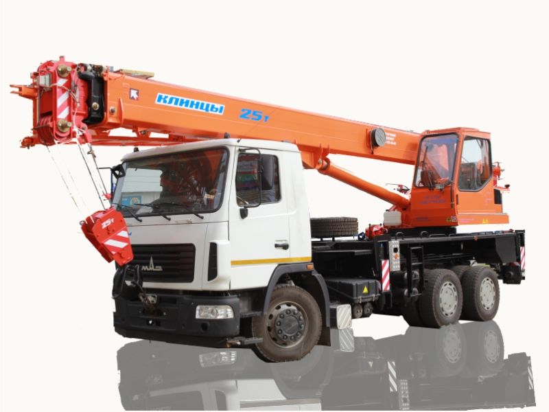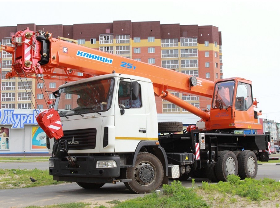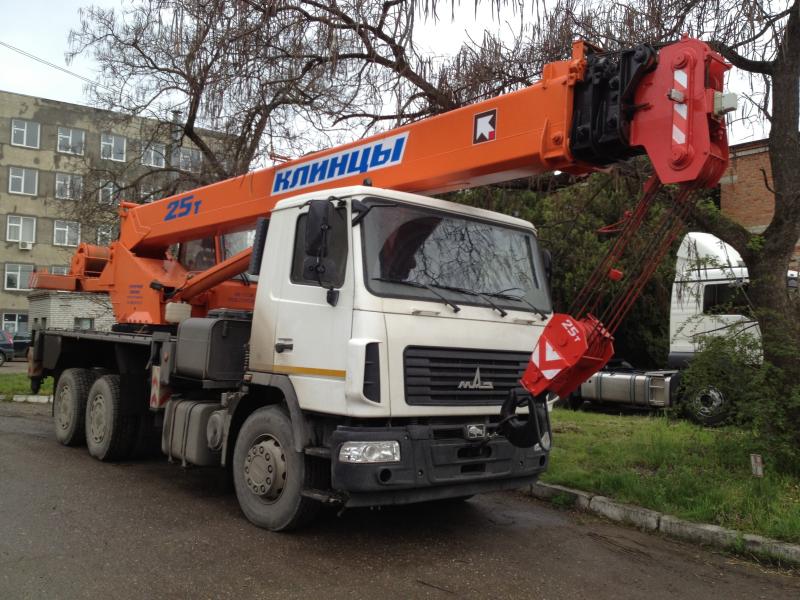 Кран стреловой автомобильный КС-55713-6К-2 грузоподъемностью 25 тонн монтируется на шасси автомобиля МАЗ-6312В3. Предназначен для погрузочно - разгрузочных и строительно-монтажных работ на рассредоточенных объектах. Шасси обладает отличной маневренностью и легкостью управления, что позволяет использовать кран на обьектах с различными типами подъездных путей, а малые габариты делают его пригодным для эксплуатации в стесненных условиях современных городов.