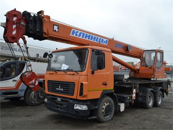 Кран стреловой автомобильный КС-55713-6К-3 грузоподъемностью 25 тонн монтируется на шасси автомобиля МАЗ-6312В3. Предназначен для погрузочно - разгрузочных и строительно-монтажных работ на рассредоточенных объектах. Шасси обладает отличной маневренностью и легкостью управления, что позволяет использовать кран на обьектах с различными типами подъездных путей, а небольшие габариты делают его пригодным для эксплуатации в стесненных условиях современных городов.