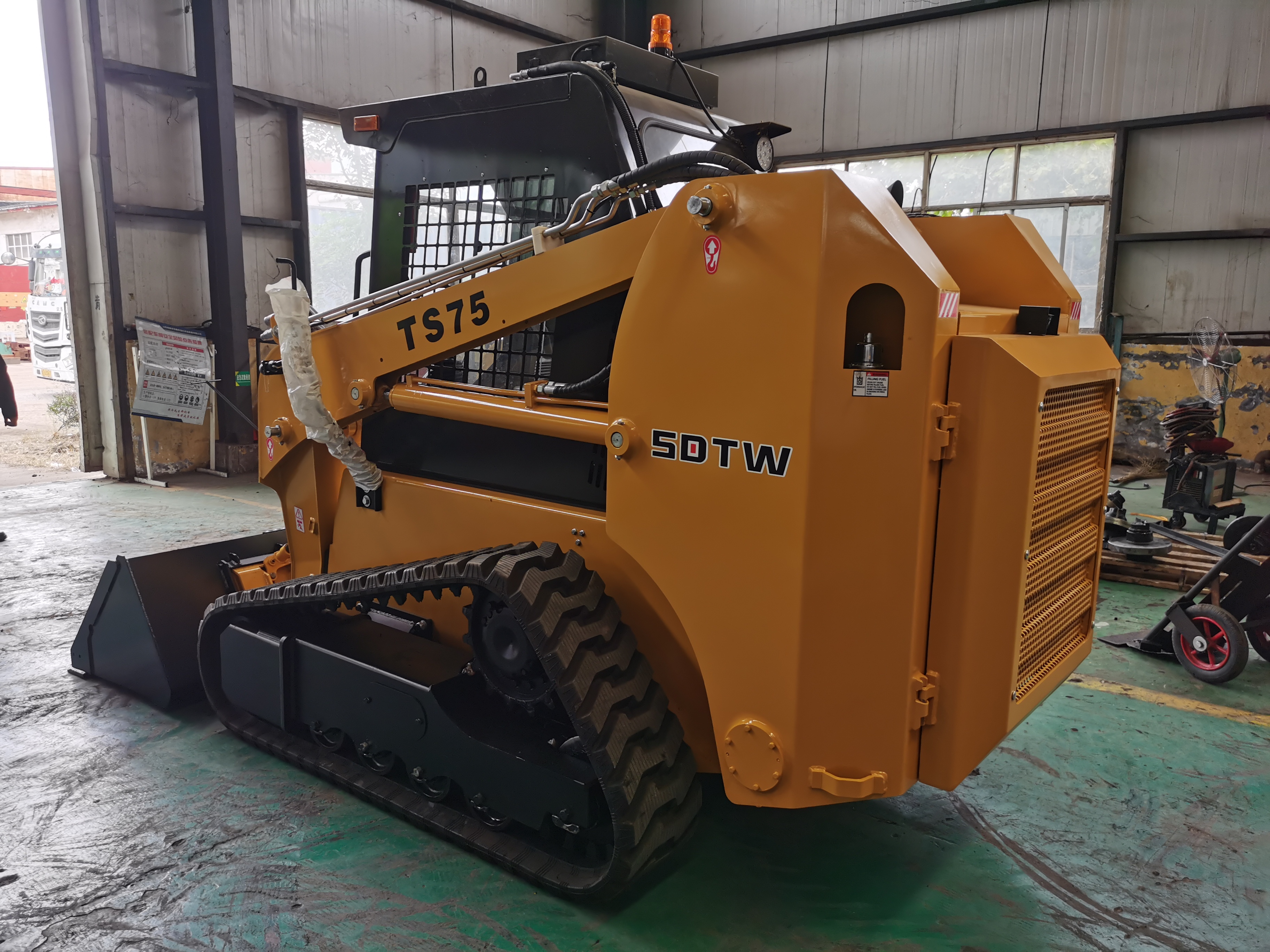 Гусеничный мини-погрузчики с бортовым поворотом TS-75 (Рабочий вес -3800 кг., Грузоподъёмность -1050 кг., Объем ковша - 0,5 м3, Мощность двигателя -75 л.с.)