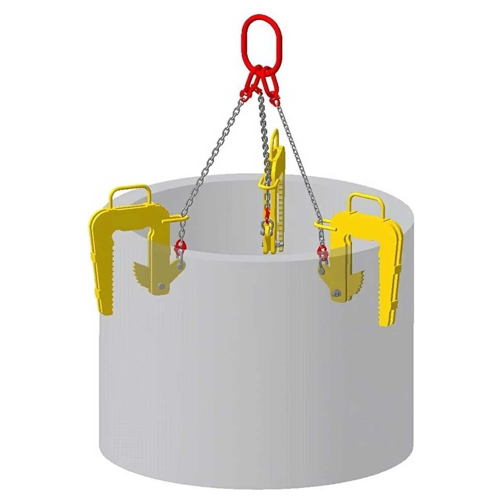 Захват для ж/б колец это по сути, цепной строп 2СЦ или 3СЦ, у которого вместо крюков на концах - захваты.Захват для бетонных колец - предназначен для перемещения и подъема железобетонных или колодезных колец с внутренним диаметром до 2,0 метров и весом до 3 т. Фиксация производится за счет рычажной системы под действием веса поднимаемого груза.