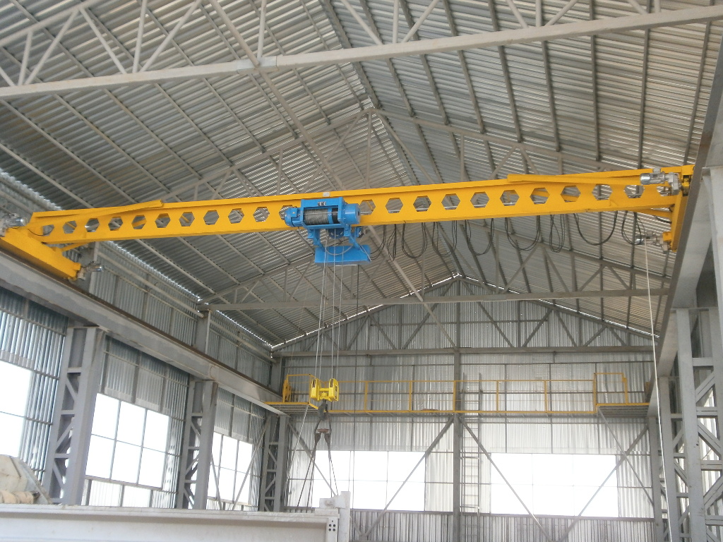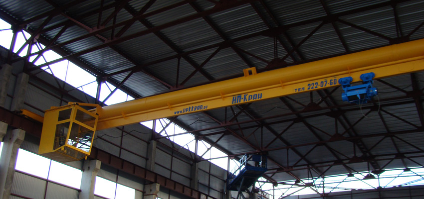Мостовой кран однобалочный позволяет при недостаточной высоте подкрановых путей, но большого запаса высоты до перекрытия ферм значительно увеличить высоту подъема груза.
