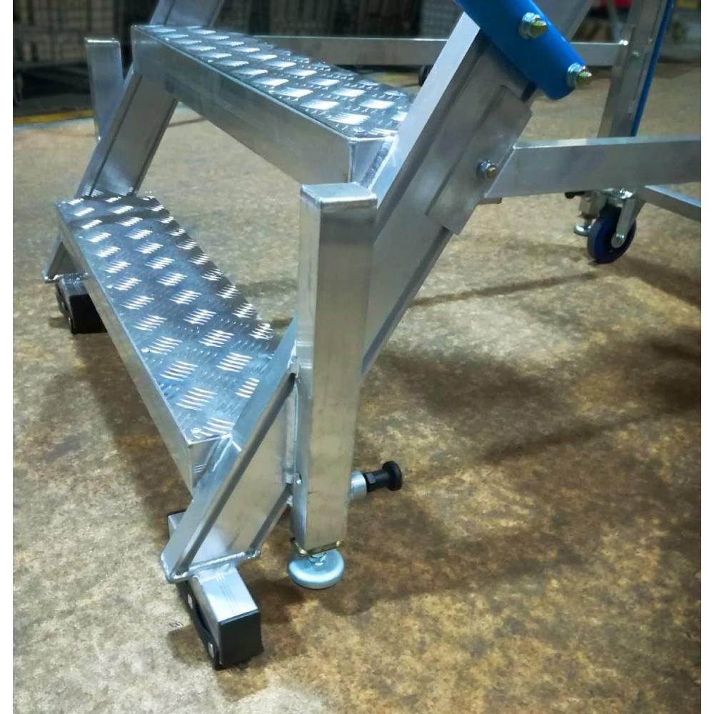 Стремянка передвижная для ТОиР воздушного транспорта SPAVT-150 (А) - предназначена для ТОиР воздушного транспорта, а также для выполнения отделочных, строительно-монтажных, окрасочных и санитарно-технических работ, обслуживания систем освещения, вентиляции, техники, монтажа оборудования, работы со стеллажами на складах, в магазинах на высоте от 1,2 до 3,2 м. Материалы: Алюм. сплавы АД31Т1 (22), АМг, 6063Т6.