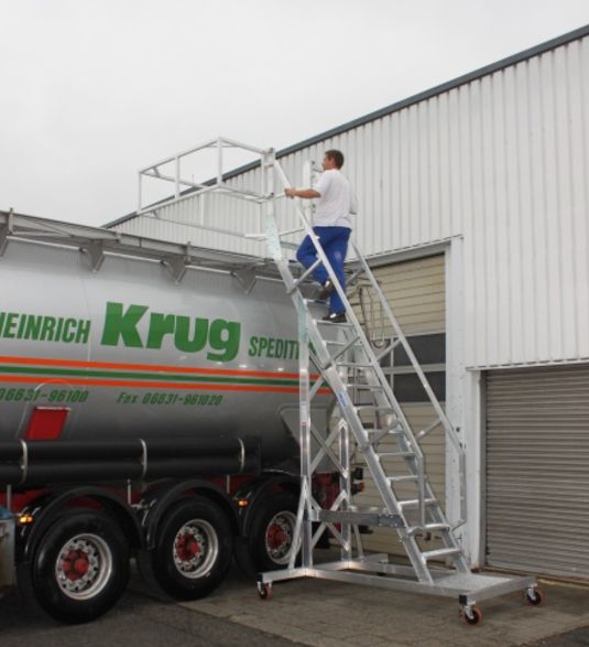 Передвижная алюминиевая конструкция для безопасного обслуживания железнодорожных и автомобильных цистерн с пожаро- и взрывоопасными продуктами.