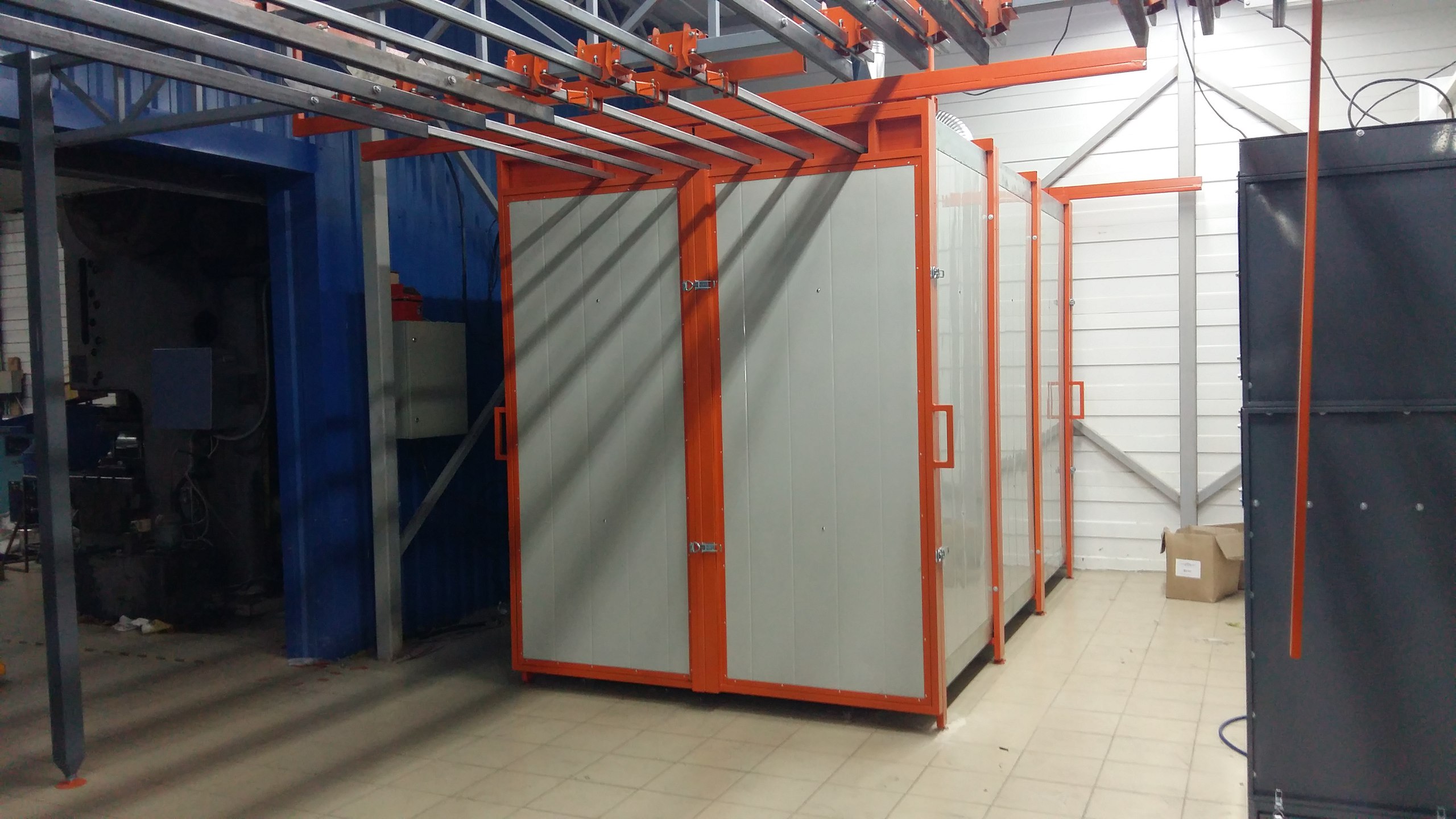- Комплектация транспортной системой (верхней или нижней) для перемещения окрашиваемых изделий из камеры покраски в печь полимеризации;