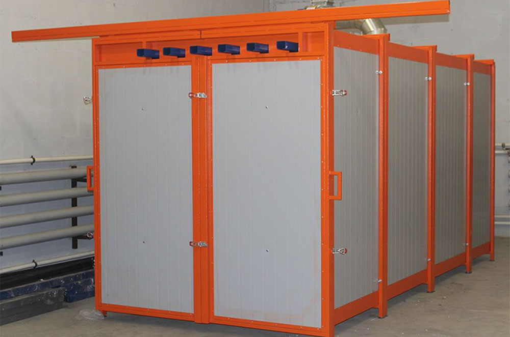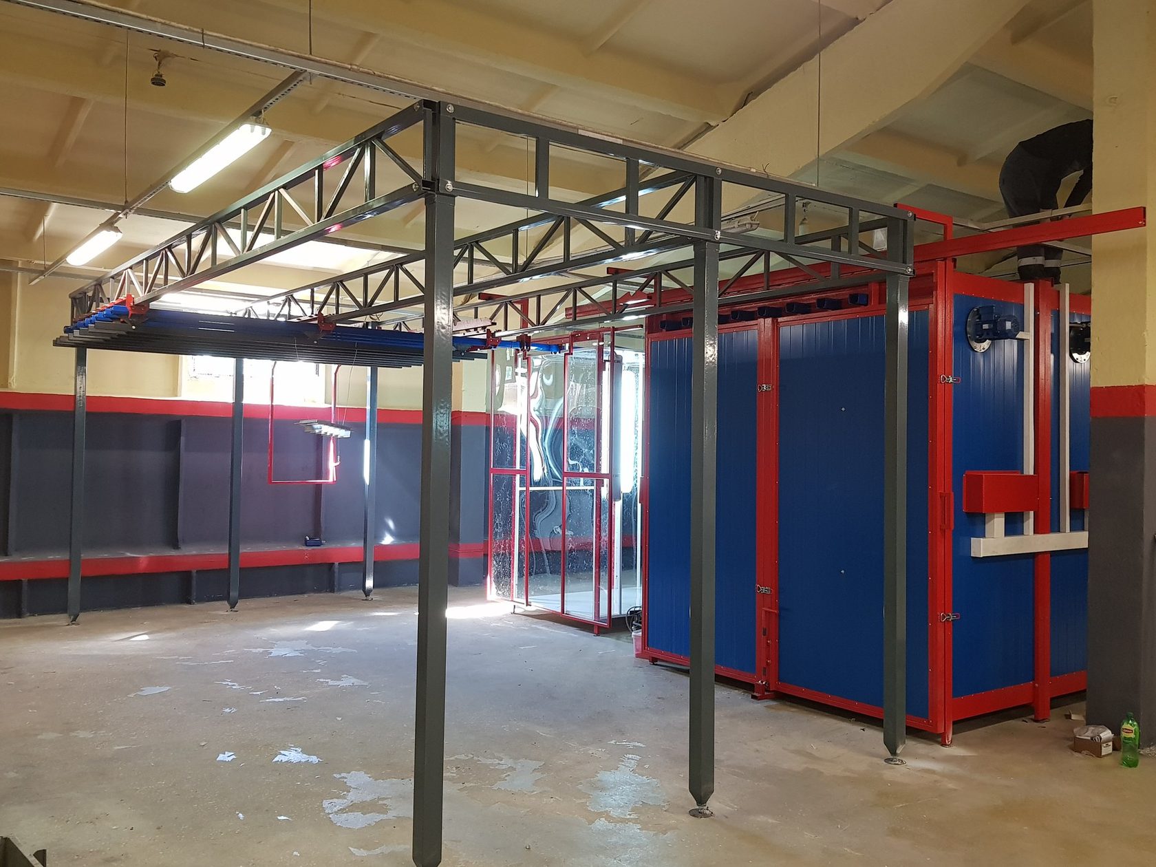 - Комплектация транспортной системой (верхней или нижней) для перемещения окрашиваемых изделий из камеры покраски в печь полимеризации;