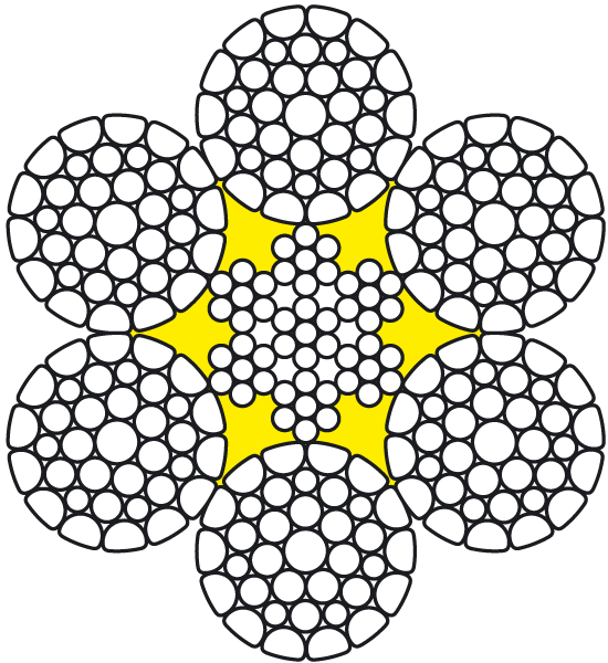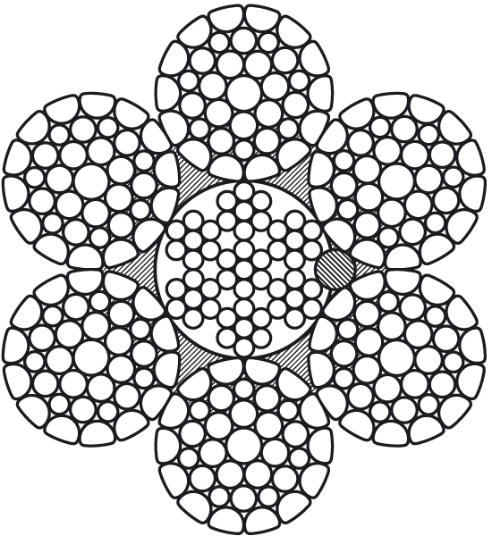 Talpa 636K (6-прядные канаты с пластическим обжатием наружных прядей СТО 71915393-ТУ 090-2010). Конструкция: 6х36 + 7х7
