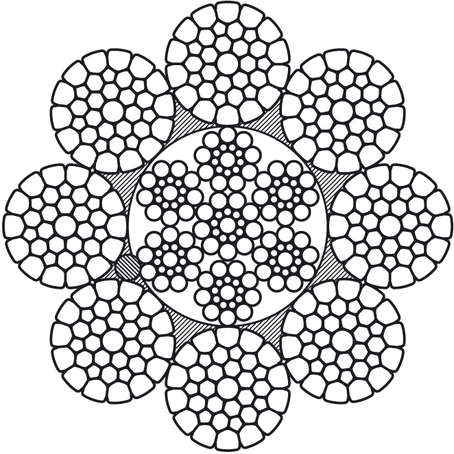 Talpa 836K (8-прядные канаты СТО 71915393-ТУ 053-2008). Конструкция: 8х36 + 6х19 + 1х19