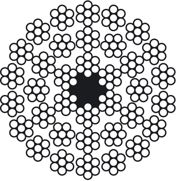 Anaconda 34 (Многопрядные некрутящиеся канаты EN 12385) Конструкция: 18х7 + 12х7 + 6х7 + 1 о.с., 18х7 + 12х7 + 6х7 + 1х7
