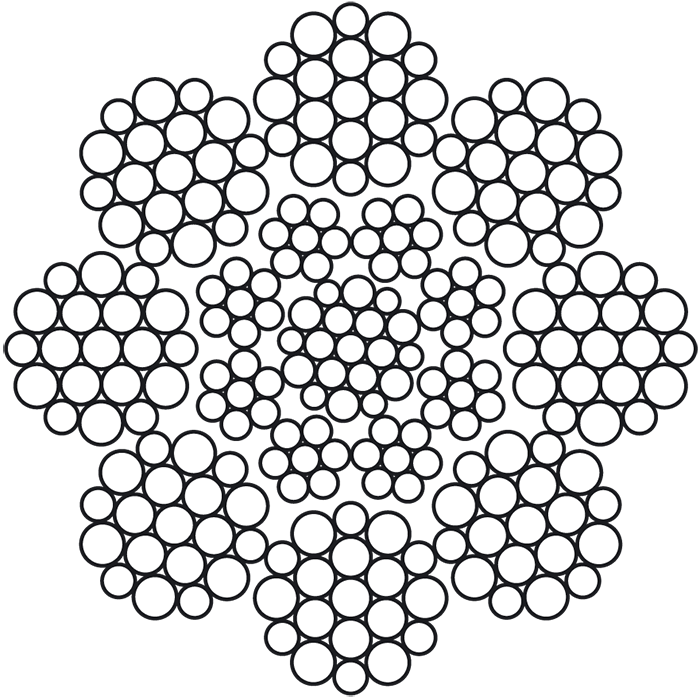 Alerion MC8 (8-прядные канаты с металлическим сердечником EN 12385-5 класс 8х19). Конструкция: 8х19 + 8х7 + 1х19