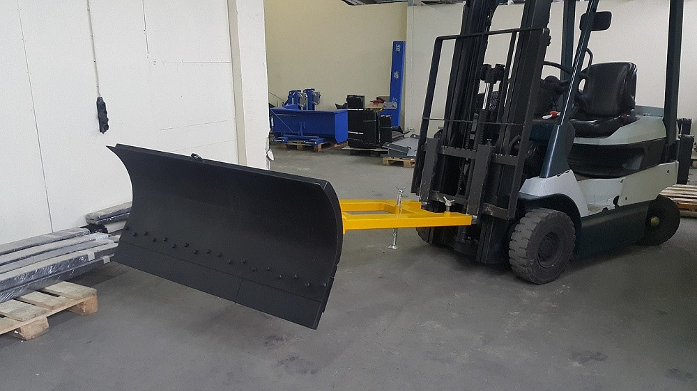 Поворотный механический снегоотвал — одна из самых распространенных насадок на вилочный погрузчик. Его используют и зимой, для очистки территорий от снега, и летом, в сельском и коммунальном хозяйствах, для перемещения и распределения грунта, щебня, песка, земли, а также для засыпания траншей и очистки территорий от мусора. Данный вид оборудования предназначается как для уборки территорий от снега, так и для распределения сыпучих грузов по поверхности. Отвал для погрузчика не применяется для земляных работ. Конструкция оборудования позволяет фиксировать его в левую или правую стороны под углом 25 градусов, поворот может осуществляться как механическим, так и гидравлическим способом (гидравлический поворот по заказу). В конструкцию оборудования могут быть внесены изменения по требованию заказчика. Оборудование устанавливается на каретку вилочного погрузчика до 16 тонн (возможен монтаж на вилы погрузчика).